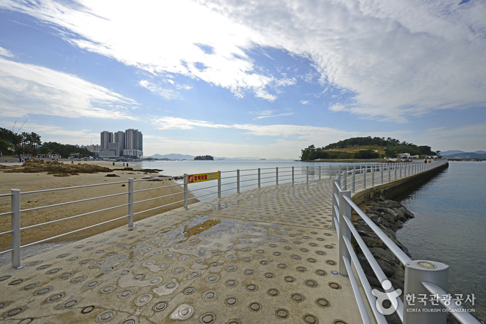 해식애와 파식애 등의 해안경관이 뛰어난 예술의 섬 장도는 GS칼텍스재단의 지역사회 공헌 사업으로 조성된 복합문화예술 공원이다. 물때에 따라 잠기지 않을 때만 지나갈 수 있는 335m의 보행교량 진섬다리를 통해 입도할 수 있다. (자료출처 : 대한민국 구석구석 - korean.visitkorea.or.kr)